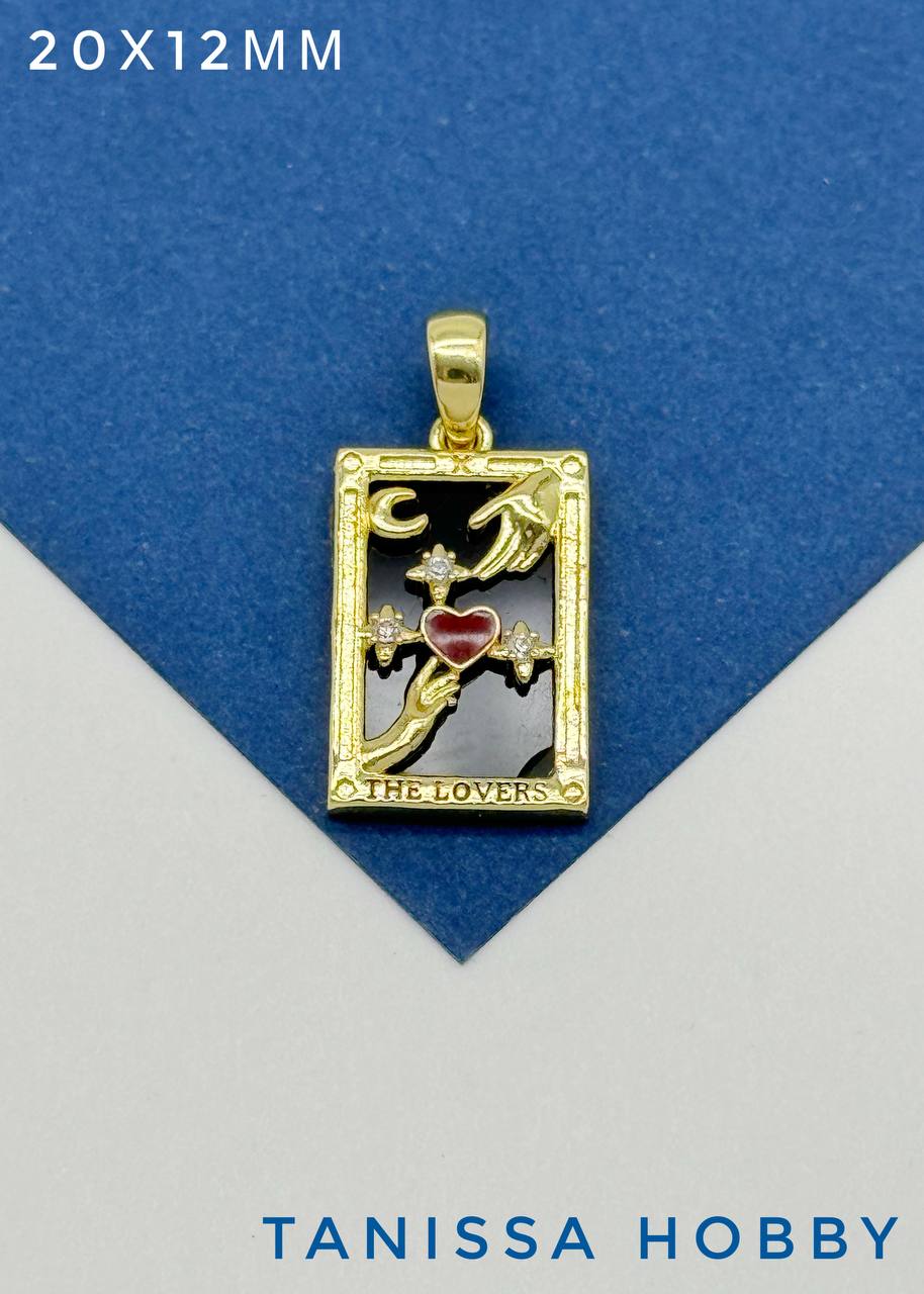 Подвеска карты Таро Влюбленные, черная, позолота, Р424
