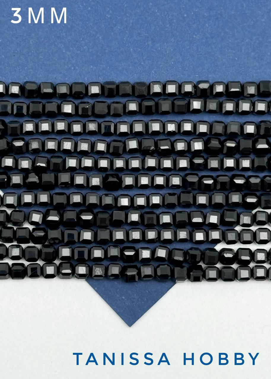 Шпинель натуральная квадратная черная, 3мм, нить, Б204