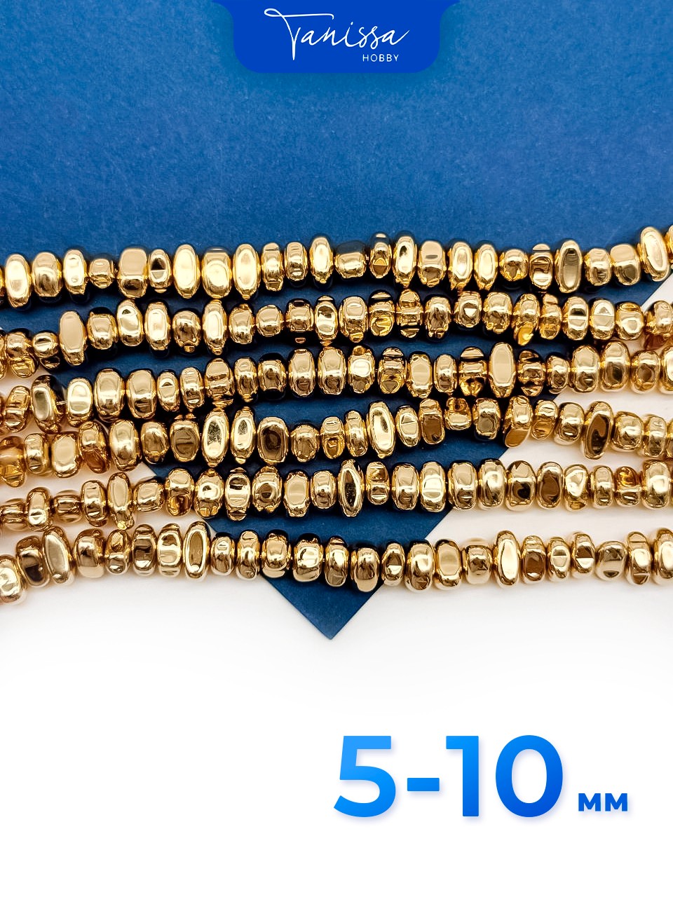 Гематин гематит крошка галтовка, 5-10 мм, светлое золото, нить, ГТ034