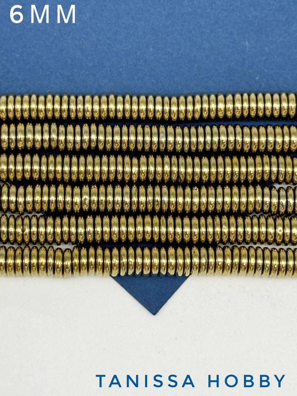 Гематин гематит бусины шайба, диск, 6мм, золото, 1/2 нити, ГТ029