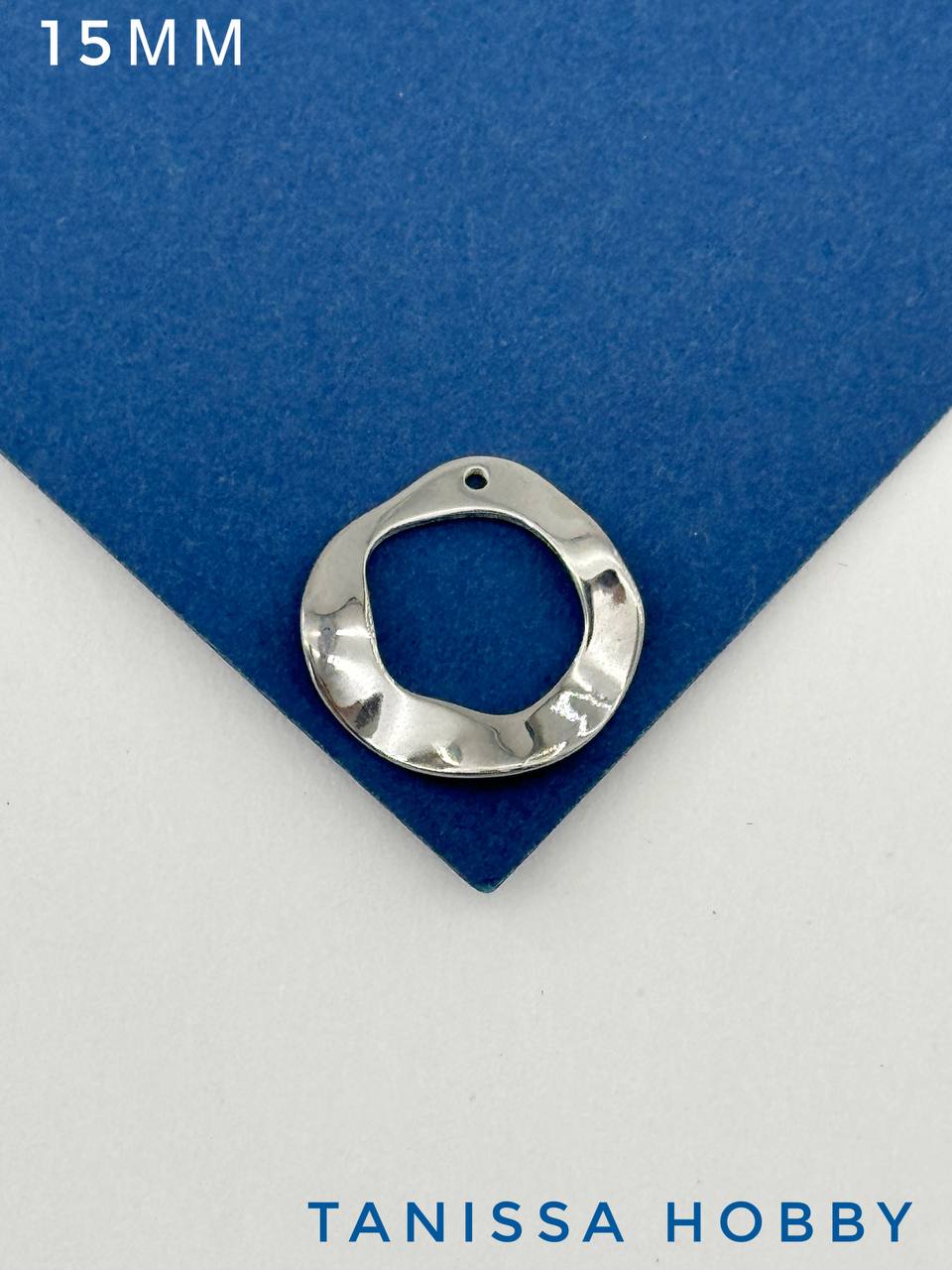 Подвеска капля круг мятый металл, 15мм, сталь, Ч126