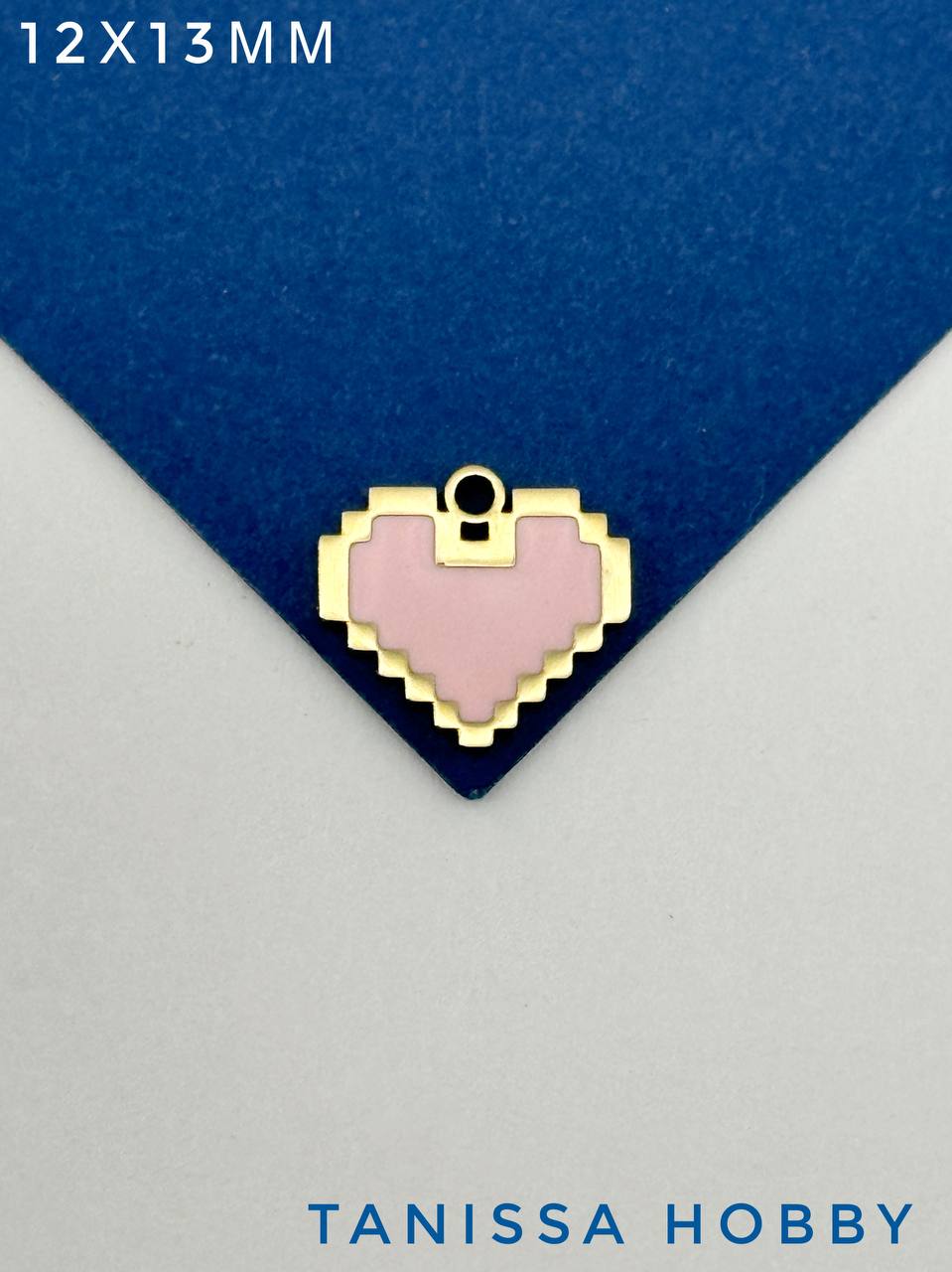 Подвеска сердце майнкрафт пиксель, 12мм, розовая эмаль, сталь, позолота, Ч122