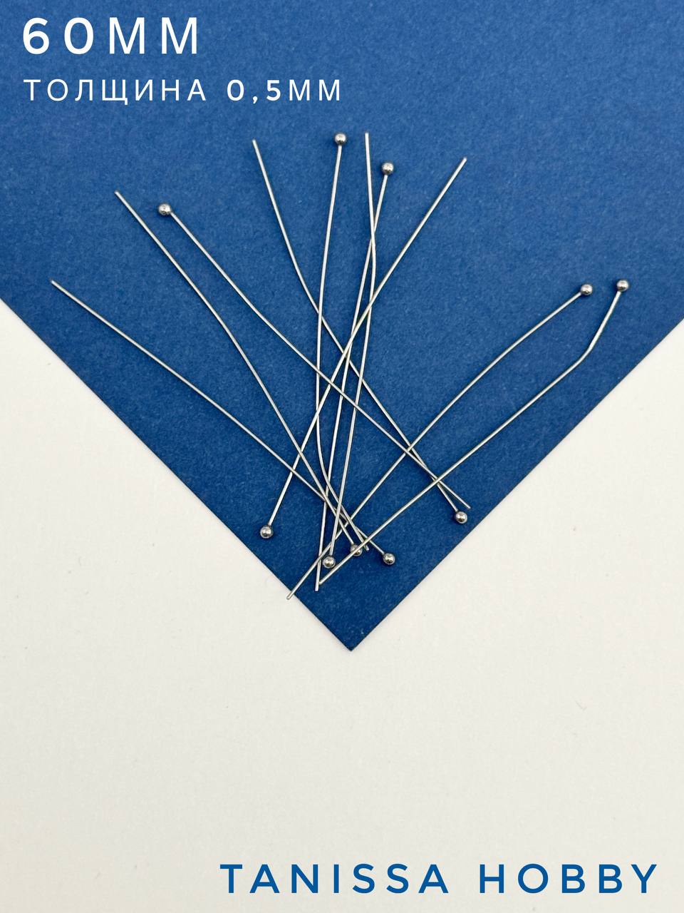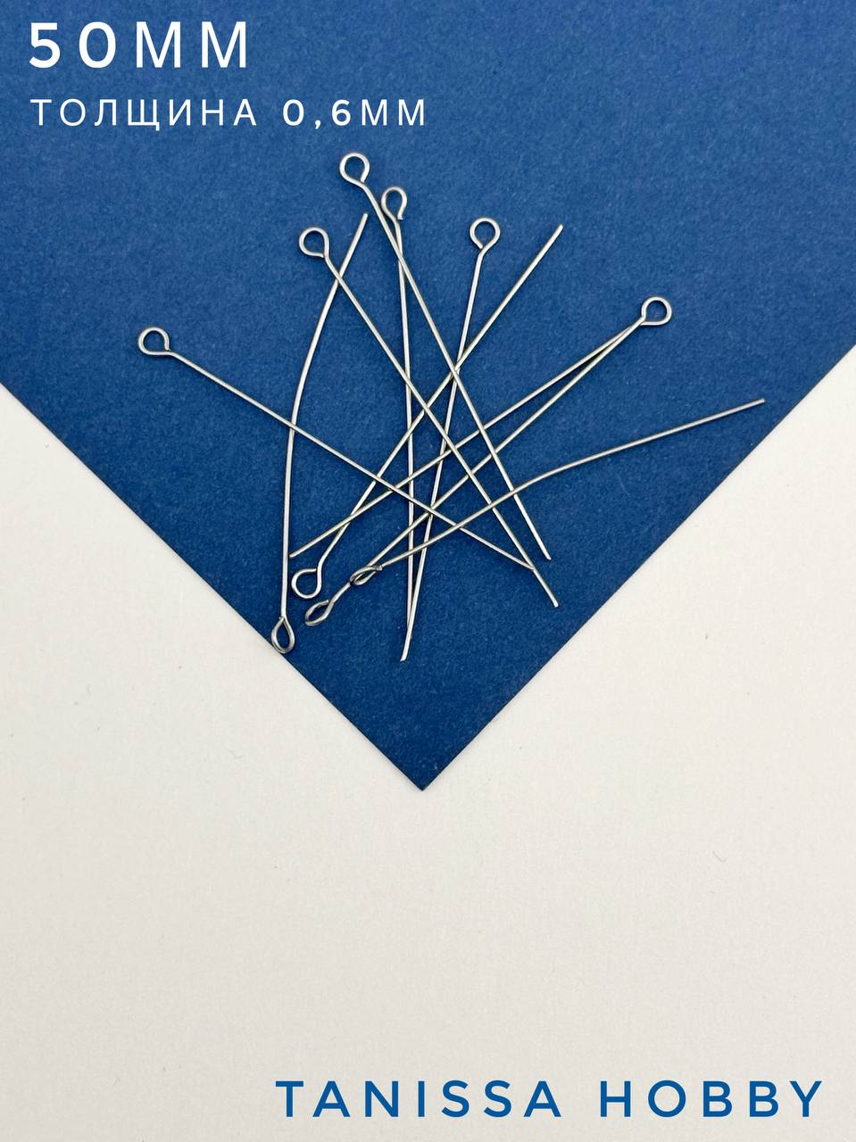 Пины 50мм с колечком жесткие, толщина 0,6, сталь, 10 штук, Ч506