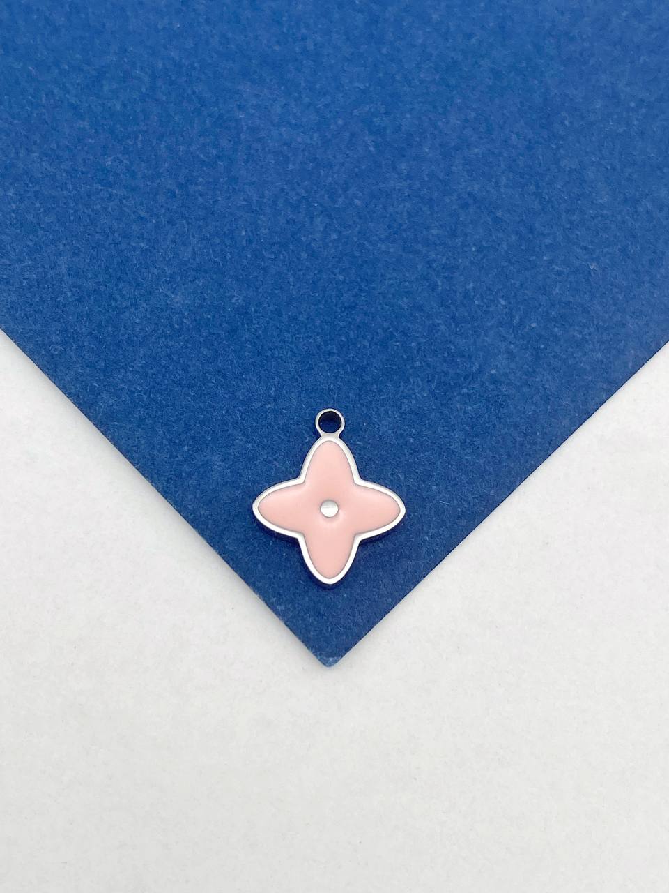 Подвеска цветок клевер, 11мм, розовая эмаль, сталь, Ч804