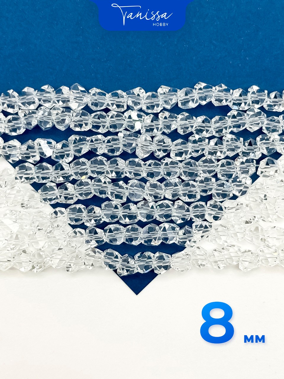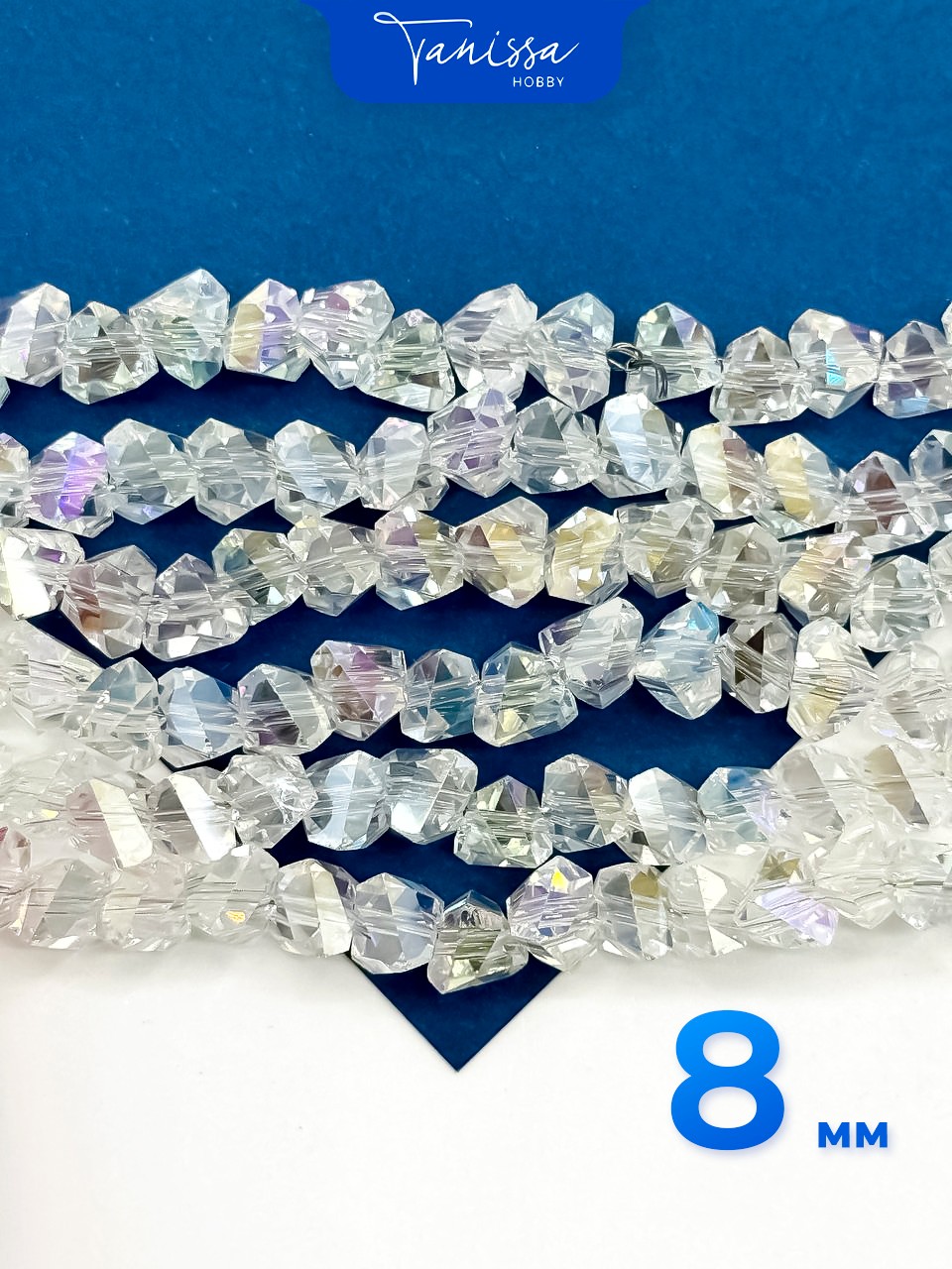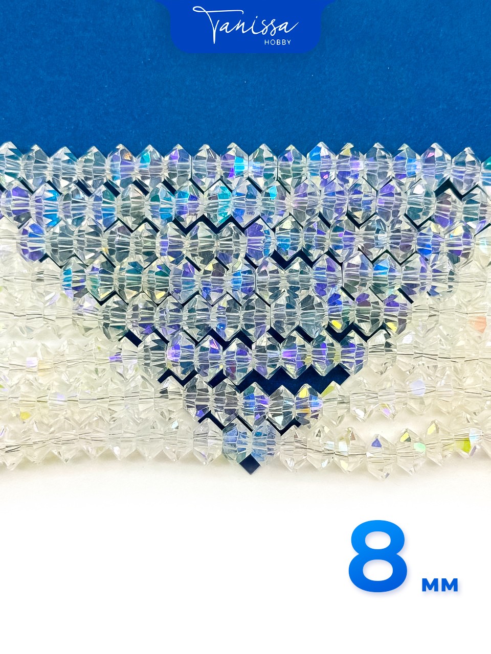 Хрусталь Биконус, плоский, прозрачный ультра АВ, 8мм, нить, Х357