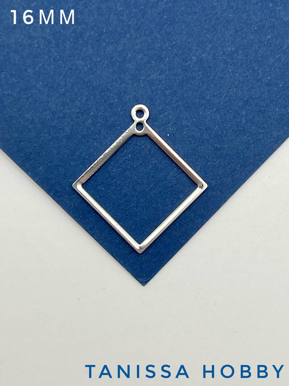 Подвеска коннектор ромб, квадрат 16мм, родий, Р825