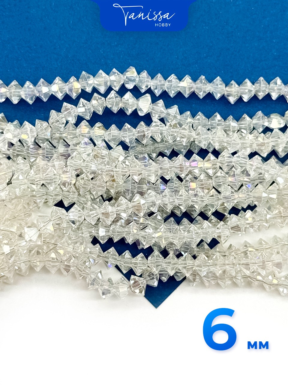 Хрусталь Биконус, плоский, прозрачный АВ, 6мм, нить, Х344